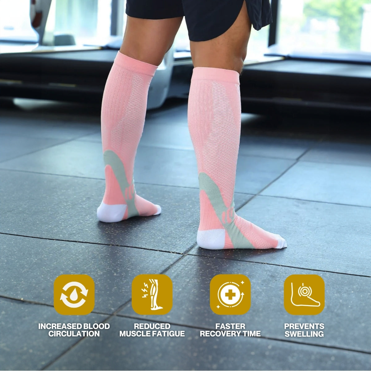 ✓ Faster Recovery: Compression socks assist in flushing out metabolic waste like lactic acid from muscles, which can build up during physical activity and lead to soreness and fatigue.