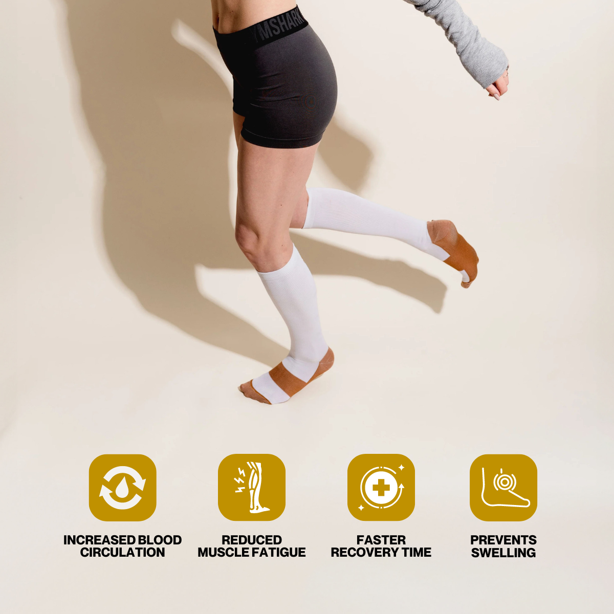 ✓ Faster Recovery: Compression socks assist in flushing out metabolic waste like lactic acid from muscles, which can build up during physical activity and lead to soreness and fatigue.